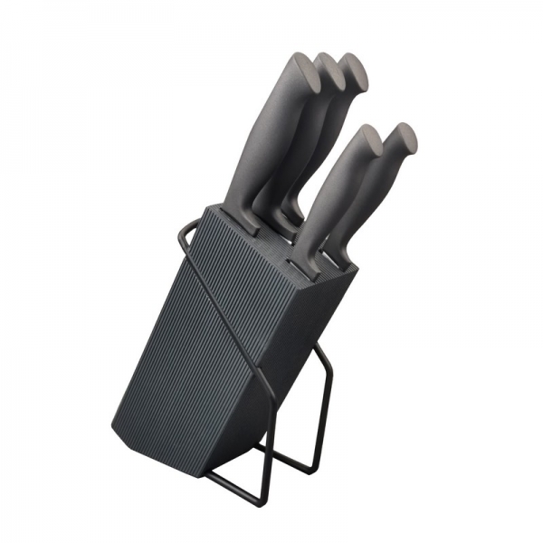 Le manche soft offre un toucher doux et agréable, réduisant la fatigue lors des longues sessions de préparation. Son ergonomie assure une maîtrise parfaite du geste, même en conditions humides. Le bloc, au design contemporain, s’intègre harmonieusement dans toutes les cuisines, du style moderne au plus traditionnel.