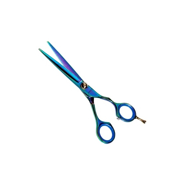 Ces ciseaux coiffeur sont en acier type japonais ANSI 440 Type C doté d'un revêtement de haute qualité en titane. Cette qualité lui confère une grande résistance, mais aussi un design très attrayant à reflets bleus et verts. On peut également compter sur un repose doigt et une butée de fermeture pour une utilisation confortable.