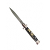 Ce couteau automatique pliant est doté d'un système à ouverture assistée. Sa lame est très pointue et mesure 10 cm, elle est en acier inoxydable et son manche au décor Ninja mesure 13 cm. C'est un couteau idéal pour chasseur, pêcheur ou passionné de nature.