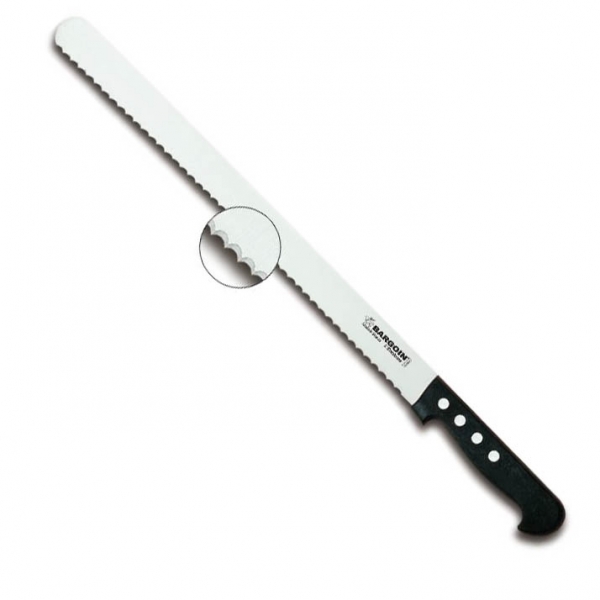 Avis de la nogentaise sur le couteau génoise, Fischer Bargoin: Ce couteau génoise à lame de 38 cm également appelé couteau biscotte, particulièrement étudié pour la découpe des pâte souple ou dure et la pâtisserie.