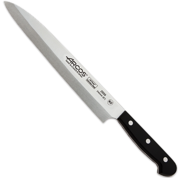 Ce couteau de cuisine "Sashimi" permet une découpe de précision des filets de poissons crus. Il est fabriqué en utilisant une technique brevetée par Arcos appelée Nitrum, qui offre une durabilité accrue, une dureté et une coupe de haute précision. Il est le résultat de la mise en forme de l'acier inoxydable avec de l'azote pour obtenir un outil puissant et ultra-résistant.