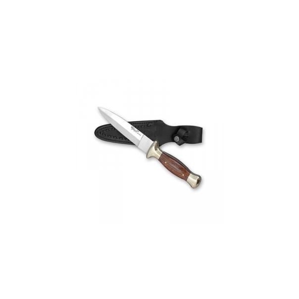 Couteau de chasse Boot 24 cm, lame fixe 11.3 cm, manche bois de palissandre pour une bonne prise en main, idéal la chasse, livré dans son étui en cuir.