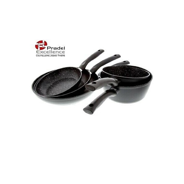 Découvrez la qualité professionnelle de Pradel Excellence avec cette batterie de cuisine 5 pièces, composée de 3 poêles (20/24/28 cm) et 2 casseroles (18/20 cm) en aluminium forgé. Conçue pour offrir une cuisson homogène, saine et durable, elle s’adresse aussi bien aux cuisiniers amateurs qu’aux passionnés de gastronomie.